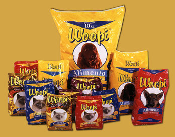 Linha de alimentos para cães e gatos WOOPI produzida por